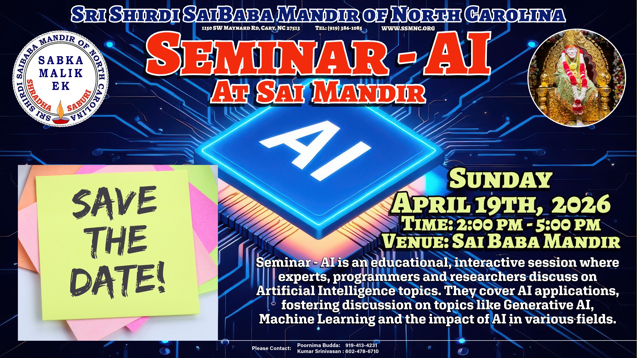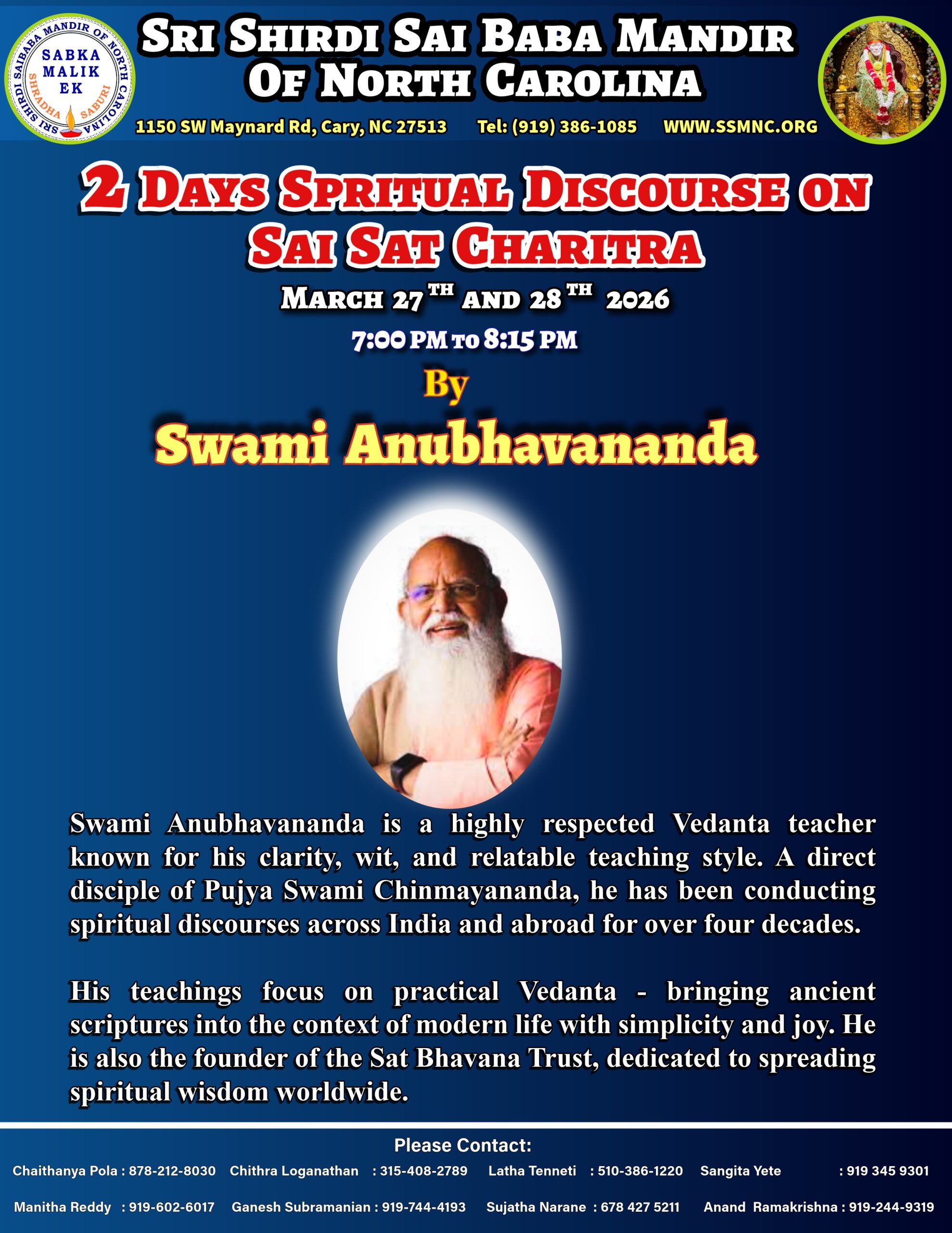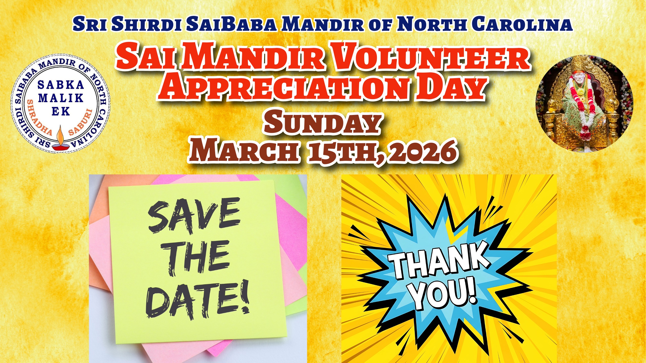 Donations Contribute to the temple’s noble causes and support our community initiatives. Priest Services Avail the sacred services of our experienced priests. Events Stay updated on the latest happenings and celebrations at our Saibaba temple. Temple Calendar Explore the schedule of rituals, festivals, and special events. Community Service Sai Care, Balvikas & Other services we do to help our community . Volunteers Join our dedicated team of volunteers and be a part of our service-oriented community. Donate Priest Services Events Temple Calendar Community Service Volunteers Donate for Parking Expansion Events Daily Events Sai Mandir More Events