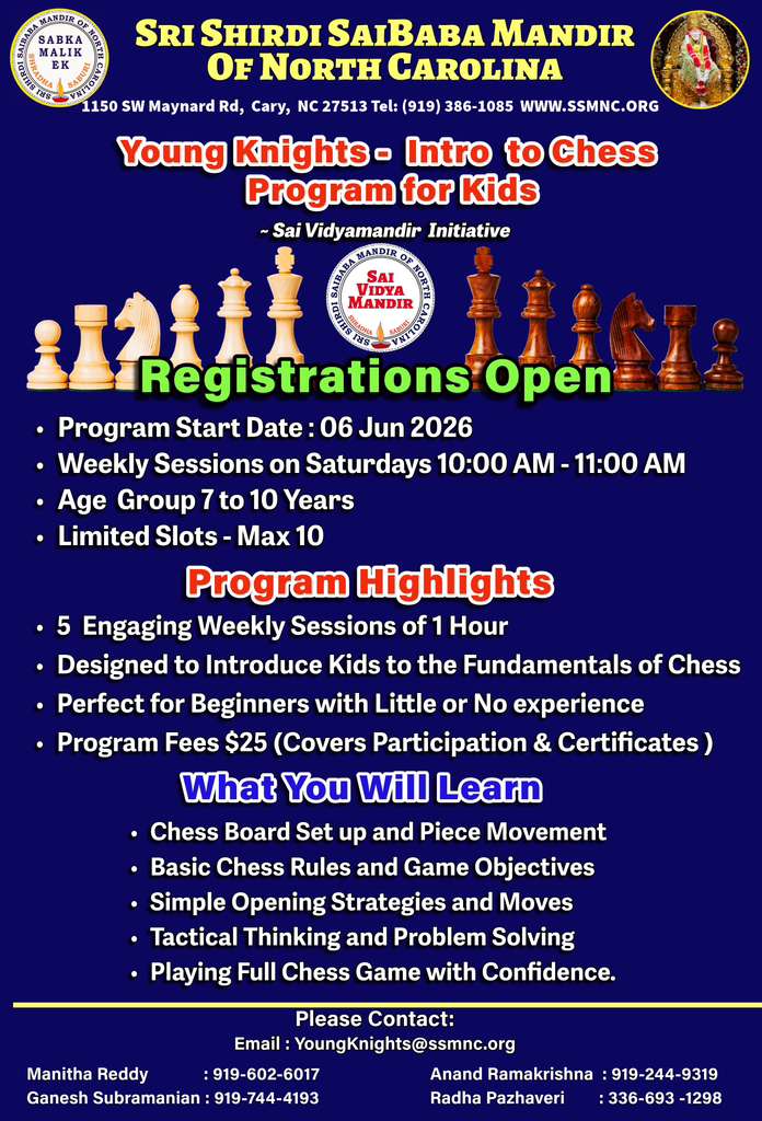 Donations Contribute to the temple’s noble causes and support our community initiatives. Priest Services Avail the sacred services of our experienced priests. Events Stay updated on the latest happenings and celebrations at our Saibaba temple. Temple Calendar Explore the schedule of rituals, festivals, and special events. Community Service Sai Care, Balvikas & Other services we do to help our community . Volunteers Join our dedicated team of volunteers and be a part of our service-oriented community. Donate Priest Services Events Temple Calendar Community Service Volunteers Donate for Parking Expansion Donate for Parking Expansion Events Daily Events Sai Mandir More Events